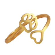 - Cat Dog Paw Print Heart Ring Gold PVD 316L Stainless Steel Pet Memorial Band