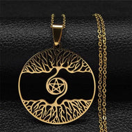 - Viking Yggdrasil Pentacle Necklace Stainless Steel Gold Tree of Life Pendant