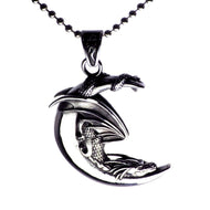 Sold out - Fantasy Dragon Necklace Silver Stainless Steel Crescent Moon Draco Pendant