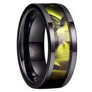 - Synthetic Yellow Topaz Ring Black Stainless Steel Citrine Wedding Band Unisex