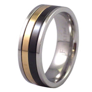 Sold out - Men's Triple-Tone Gold, Black, and Stainless Steel Ring - Wedding BandSale
