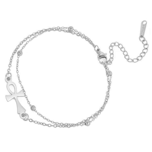 The Ankh bracelet can be worn on the wrist or ankle and is made of solid hypoallergenic 316L surgical stainless steel.