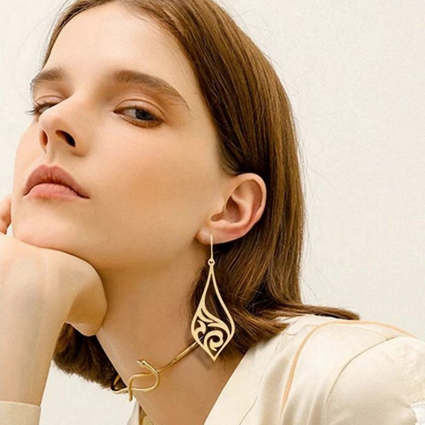 These beautiful art deco earrings are made of solid hypoallergenic stainless steel. They are dangle or drop style with hook fastenings.