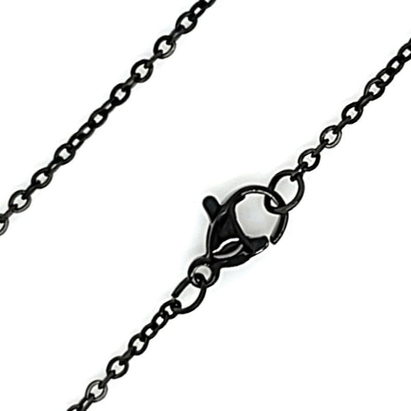 - The cable chain necklace is 1.6mm wide, it has a high polish black PVD finish with an easy-to-use lobster claw clasp.