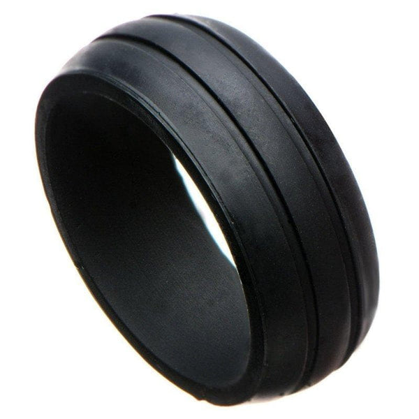 This flexible silicone rubber wedding band is a durable breakaway ring that measures 9.3mm wide. The metal-free hypoallergenic silicone ring makes an excellent fashion ring or rubber wedding band. Available in ring size 9, 10, 11, or 12.