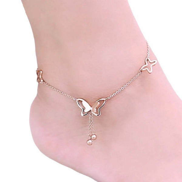 This butterfly anklet approximately measures 14mm wide at the center charm by 1.5mm wide at the cable chain and has an easy-to-use lobster claw clasp.