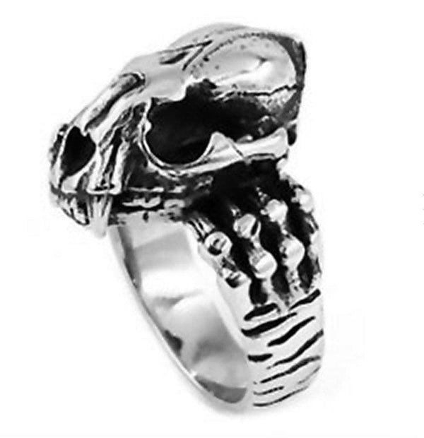 This awesome cat skull ring or saber-tooth tiger band is made of solid hypoallergenic stainless steel.