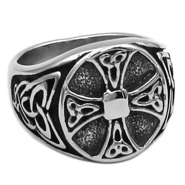 - This Celtic cross signet ring trinity knot band is solid hypoallergenic 316L stainless steel.
