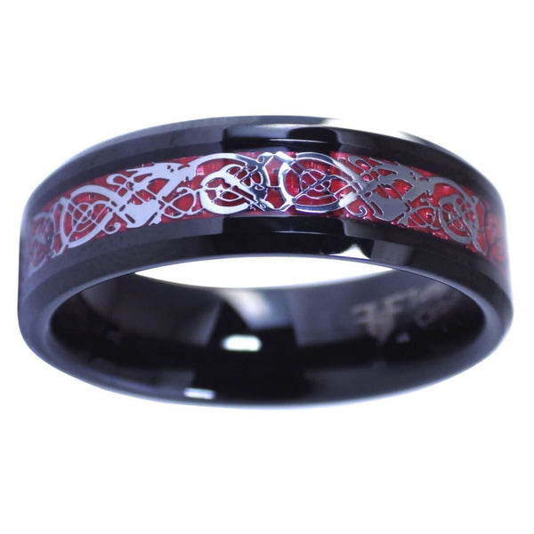 Celtic Red Dragon Ring Carbon Fiber Black Tungsten Band 6MM
