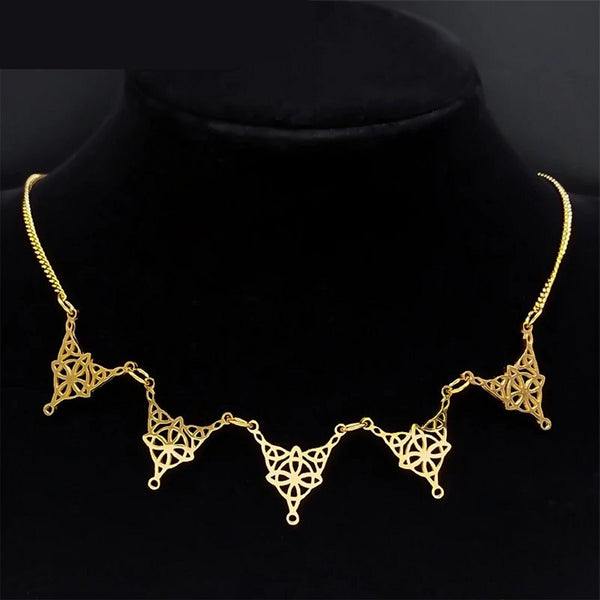 This beautiful Celtic trinity star collar necklace is made of solid hypoallergenic 316L surgical stainless steel.
