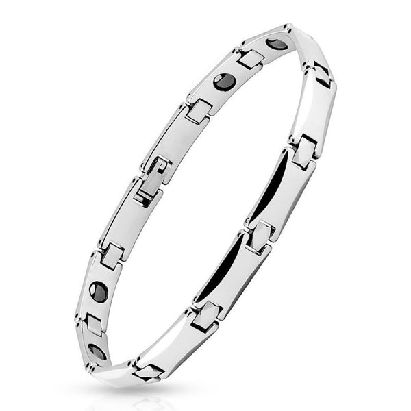 The minimalist tungsten bracelet has ten magnets along the inside to help relieve the pain associated with arthritis and carpal tunnel.