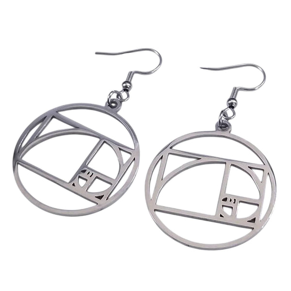 These beautiful Fibonacci spiral earrings are made of solid hypoallergenic 316L surgical stainless steel. They are dangle or drop style with hook fastenings and they have a high polish finish.