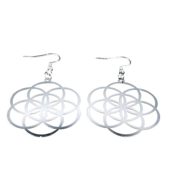 These beautiful Flower of Life earrings are made of solid hypoallergenic 316L surgical stainless steel. They are dangle or drop style with hook fastenings and they have a high polish finish.