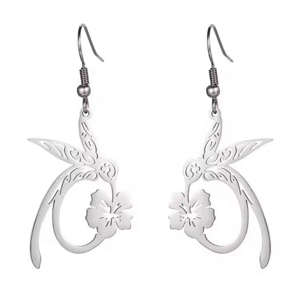 These beautiful hummingbird earrings are made of solid hypoallergenic 316L surgical stainless steel. They are dangle or drop style with hook fastenings.