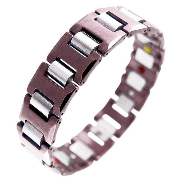 - The bracelet is made of solid tungsten carbide with a high-polish purple PVD finish.