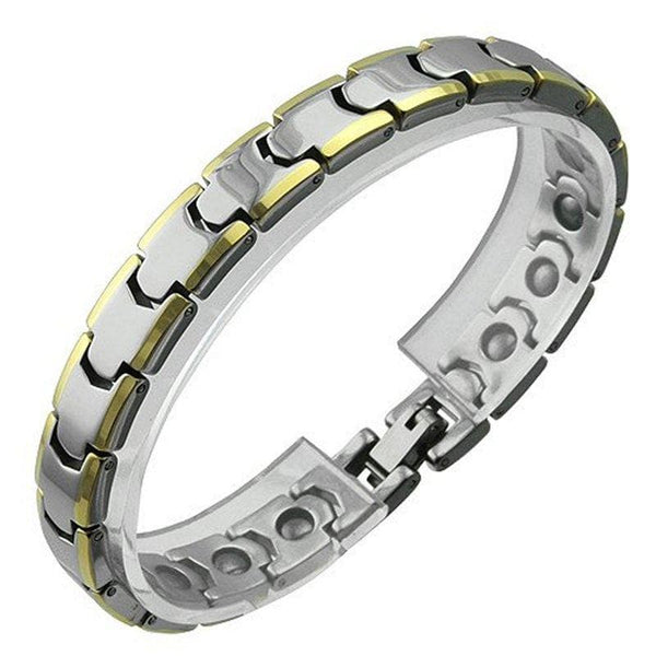 - The bracelet is made of solid tungsten carbide with a high polish and gold color PVD finish.