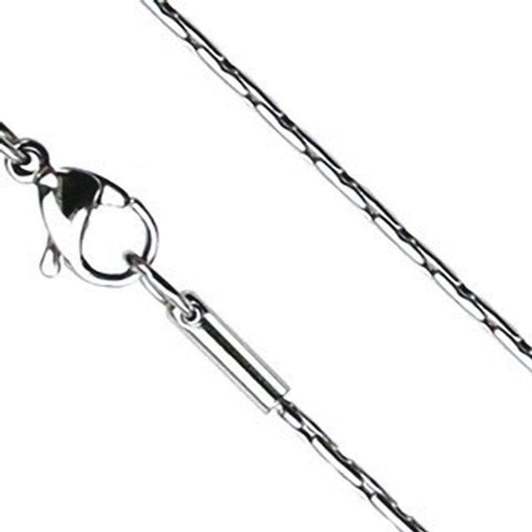 - The minimalist style chain has a high polish finish, is 1mm wide, and has an easy-to-use lobster clasp.