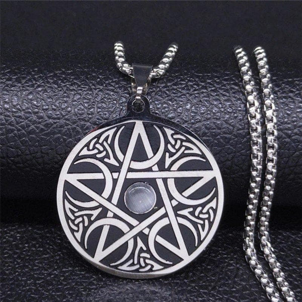 This moon pentacle pendant or crescent star necklace is made of solid hypoallergenic stainless steel.
