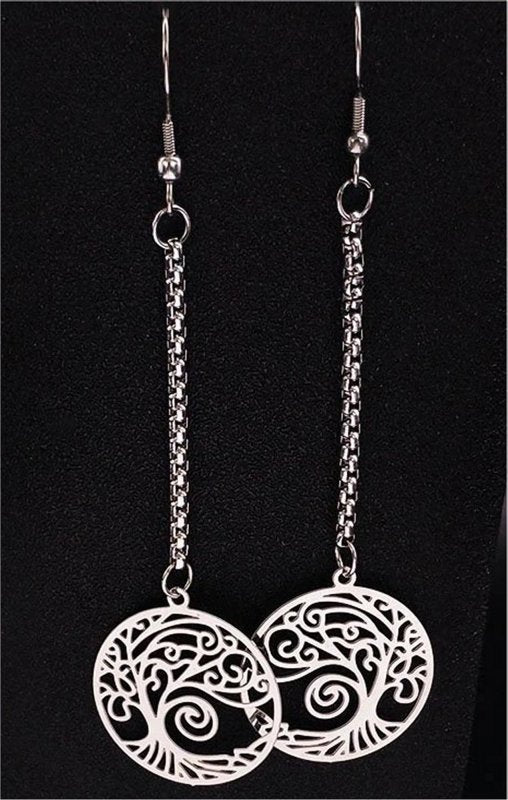 These mystical tree of life earrings are made of hypoallergenic stainless steel. They are dangle or drop style with hook fastenings.