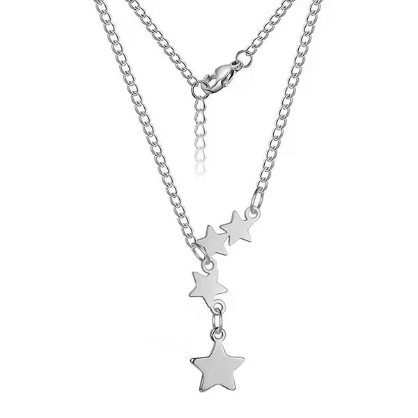 The retro star y-necklace has a high-polish finish. The retro star cable chain measures approximately 1.7mm wide by 19 inches long from end to end with an easy-to-use lobster claw clasp.