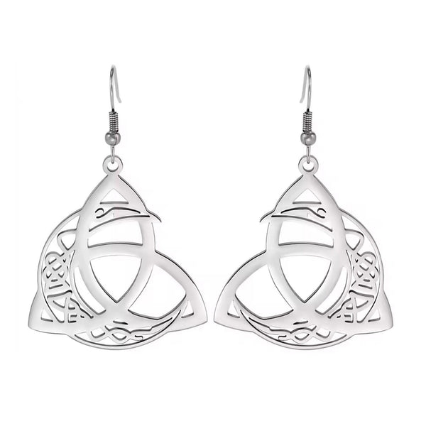 These beautiful trinity moon Celtic earrings are made of solid hypoallergenic 316L surgical stainless steel. They are dangle or drop style with hook fastenings.