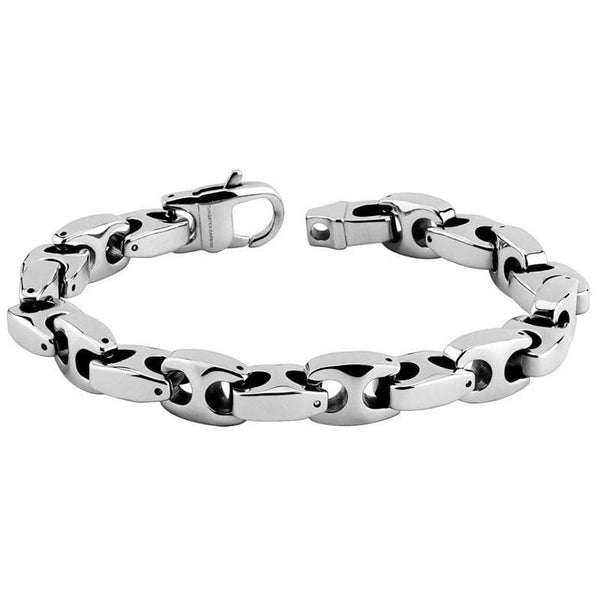 The mariner chain link bracelet is made of solid tungsten carbide.