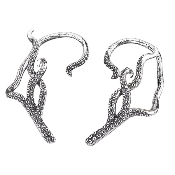 These cool octopus wrap-around above-ear cuff crawler earrings are made of solid hypoallergenic 316L surgical stainless steel.