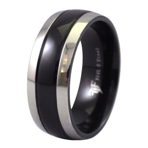 Two-Tone Black and Stainless Steel Ring - Wedding Band