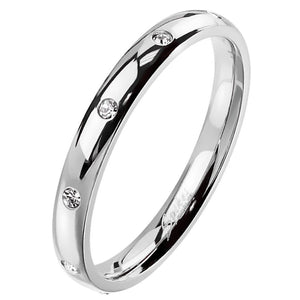Stainless Steel Cubic Zirconia Wedding Band - Eternity Fashion Ring