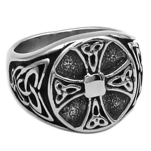 Celtic Cross Signet Ring Stainless Steel Trinity Knot Band
