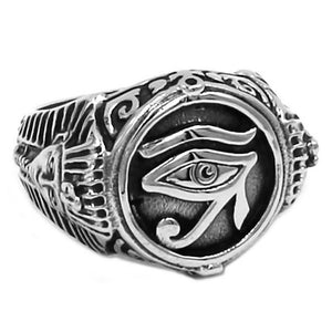 Egyptian Eye of Ra Ring Stainless Steel Ancient Egypt King Tut Signet Band