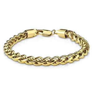 Gold Spiga Wheat Chain Bracelet Stainless Steel Rocker Biker