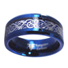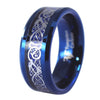 Blue Tungsten Celtic Dragon Rings With Blue Carbon Fiber