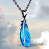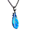 Blue Feather Necklace 316L Stainless Steel Bird Falcon Crow Raven Pendant