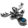 This awesome deer or elk design has a high polish finish with antiquing to highlight the details. The deer has a 7.5mm oval shape synthetic turquoise stone mounted in the chest. Note each stone will have a unique marbling and will vary from the picture.