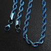Electric Blue Rope Chain Necklace Stainless Steel 4mm 20-30-in