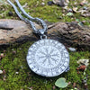The backside of the pendant is engraved with Norse runes and the helm of awe symbol. The Helm of Awe is an ancient Norse symbol that goes by a few names: the Helm of Awe, Aegishjalmur, and Viking Compass. The name Aegishjalmur is derived from the God of the ocean of Jotunheim, Aegir. Jotunheim is the land of the frost giants, one of the nine realms of Norse mythology. The helm of awe is also known as a symbol of protection, courage, and strength.