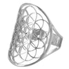 Flower of Life Ring Silver Stainless Steel Spiritual Sacred Geometry Band