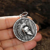 The design without bail measures approximately 40mm in diameter by 5.7mm thick at the center. The bail can accommodate a chain or cord necklace up to 4mm wide.