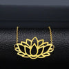 Gold Lotus Flower Necklace Stainless Steel Spiritual Nelumbo Pendant