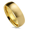 A comfortable gold 6mm wide domed ring is perfect as a simple and stylish wedding band. The domed ring band is made of hypoallergenic solid stainless steel with a brushed gold color PVD finish.
