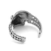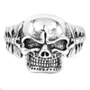 This highly detailed angry skull and bones cuff has a high polish finish with antiquing to highlight the details.