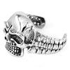 This cool large angry skull cuff bracelet will make a great everyday casual design, an addition to many costume styles, and will also make a wonderful gift.