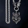 Large Viking Fenrir Wolf Necklace Stainless Steel Geri Freki Wolves Wheat Chain