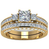 Matching Engagement Solitaire Ring Gold Steel Eternity Wedding Band Stacking Set