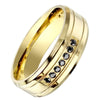 Mens Gold Wedding Band Stainless Steel Cubic Zirconia Modern Bling Ring