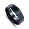 Minimalist Black and Rainbow Ring Stainless Steel Wedding Band