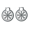 Norse Helm of Awe Earrings Black Stainless Steel Large Viking Dangles