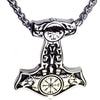 Norse Wolf Thors Hammer Necklace Stainless Steel Viking Vegvisir Mjolnir Pendant