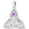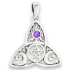 The trinity has a pentacle in the center and crescent moons on either side creating a triple goddess design. Above the pentacle is a 2mm round amethyst purple cubic zirconia crystal in a bezel setting.
